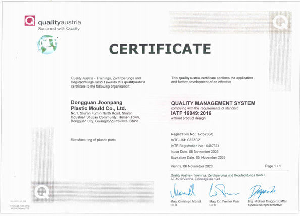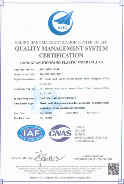 China Dongguan JoonPang Plastic Mold Co., Ltd. Zertifizierungen
