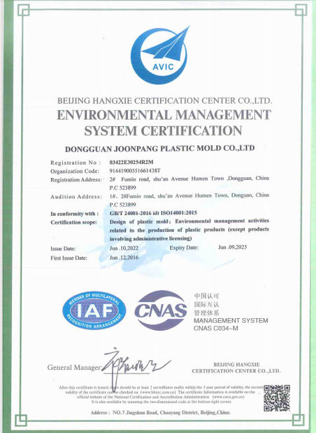• China Dongguan JoonPang Plastic Mold Co., Ltd. Zertifizierungen